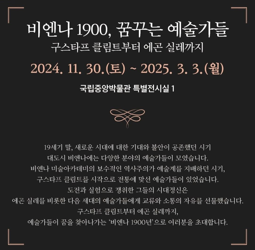 서울 국립중앙박물관에서 열리고 있는 ‘비엔나 1900, 꿈꾸는 예술가들’ 전시는 구스타프 클림트와 에곤 실레를 비롯한 오스트리아 출신 미술사 거장들의 대표 작품들을 한자리에서 만나볼 수 있는 특별한 기회입니다. 이번 전시에서는 ‘빈 분리파’의 걸작부터 빈 디자인 공방의 공예품까지, 191점의 예술 작품이 전시되고 있습니다. 그럼, 예매 방법과 함께 전시 관람 꿀팁을 소개할게요!